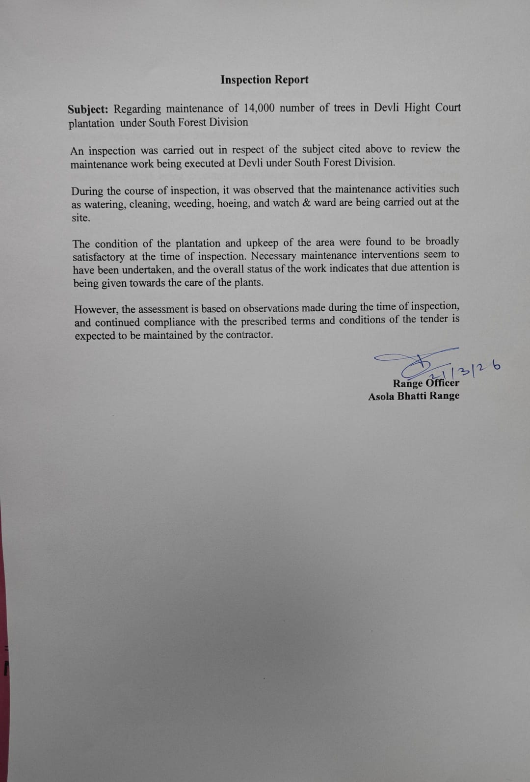 Creation & Maintenance of 14,000 High Plantations at Devli (SFD)