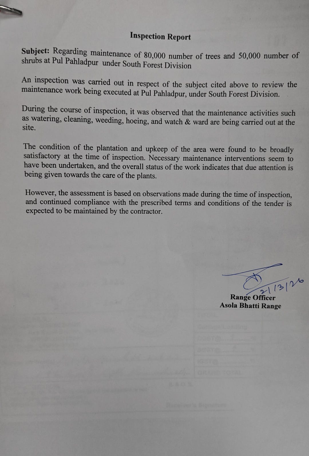 Creation & Maintenance of 80000 Plantation at Pul-Pehladpur (SFD)