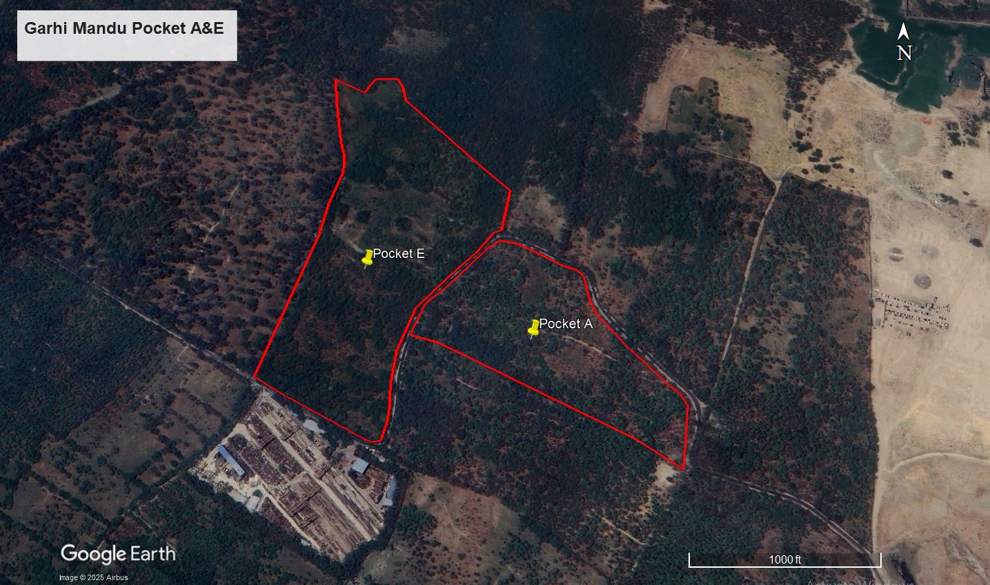 Creation & Maintenance of 4000 saplings (2000 Pkt E and 2000 Pkt A) at Garhi Mandu