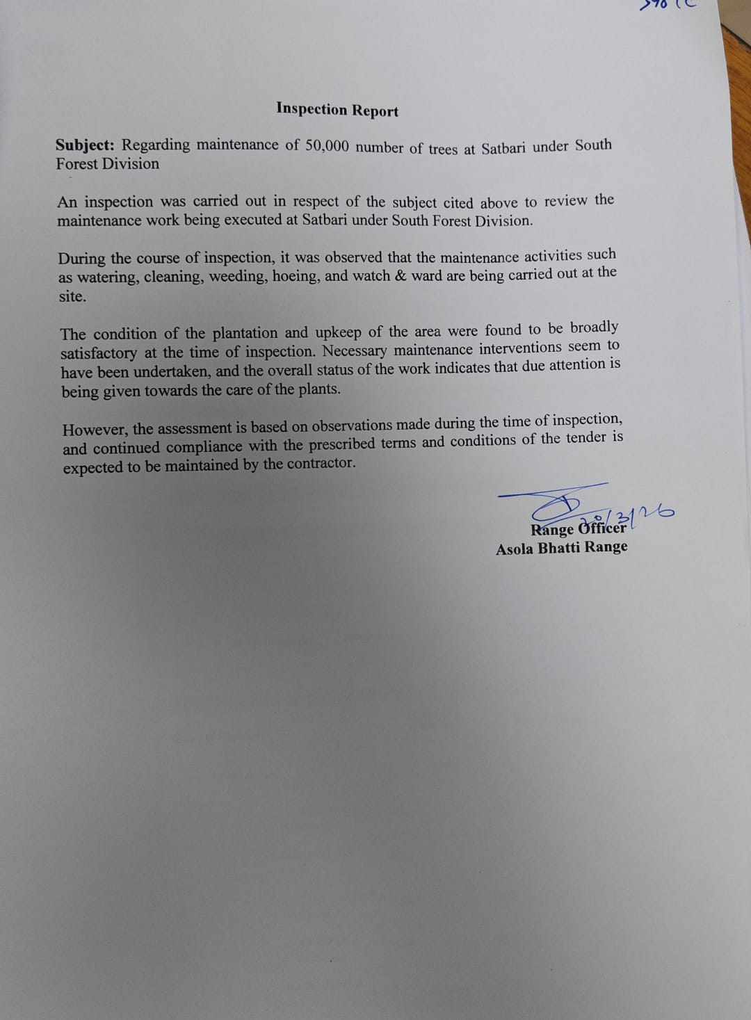Creation & Maintenance of 50,000 Plantations at Satbari (SFD)